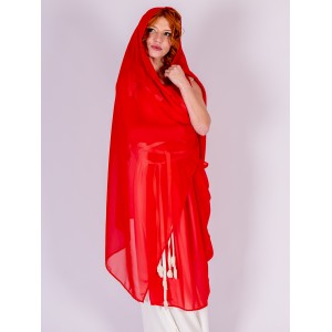 The chiffon measures 3 x 1.20 meters, allowing for multiple styling options: it can fall asymmetrically, wrap around the body, or be lifted over the head as a veil. Its sheer quality creates dynamic layers that move beautifully while maintaining a light, elegant feel.