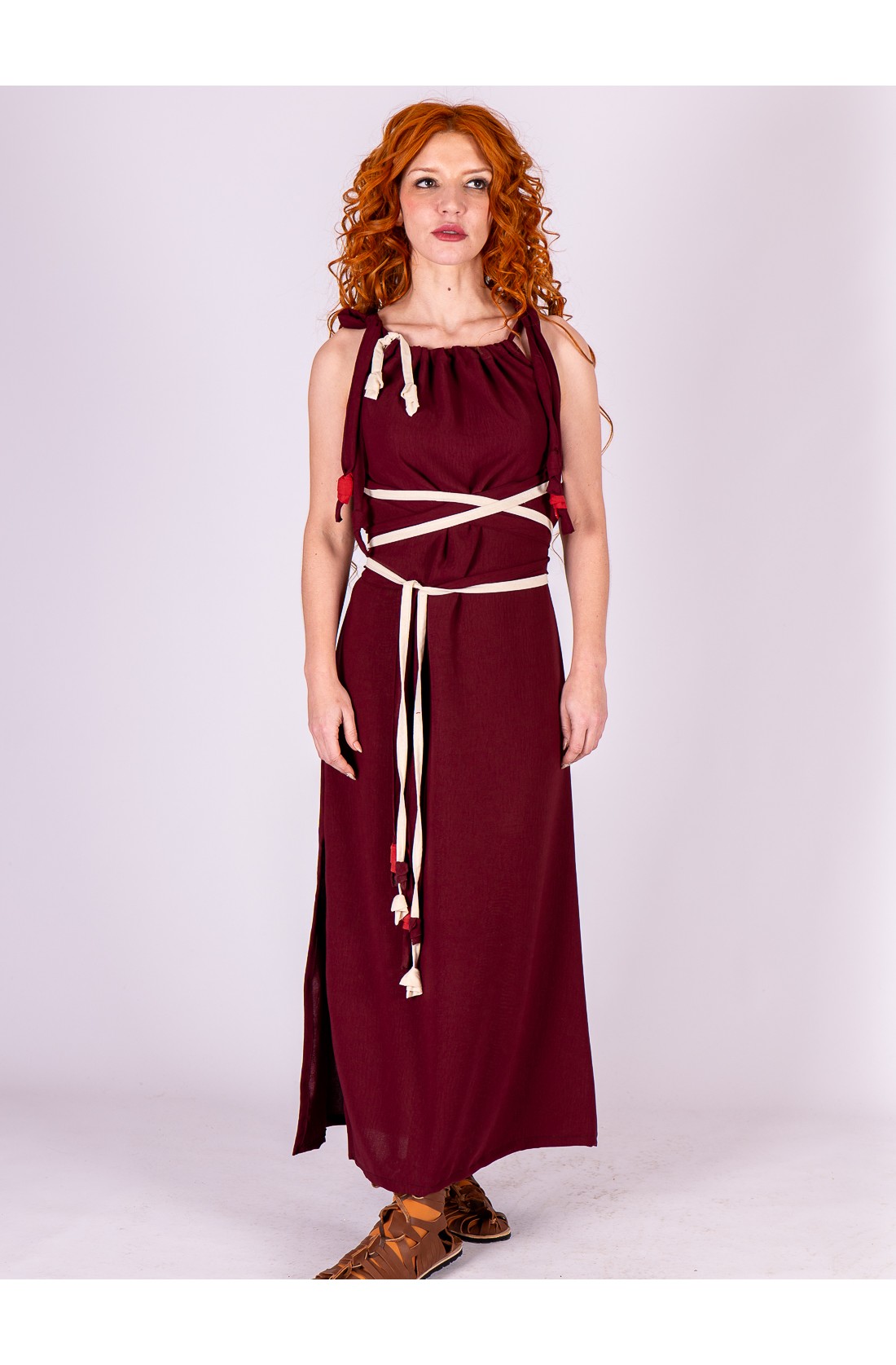 Burgundy Roman Dress with Crossed Belt