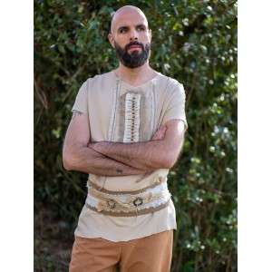 In Yute crea we offer you to enjoy fairs and events this Celtic costume set of three pieces in light tones and handmade finishes, a short-sleeved garment that incorporates trousers and belt with rustic finish, a perfect combination for Celtic fairs and Viking festivals.