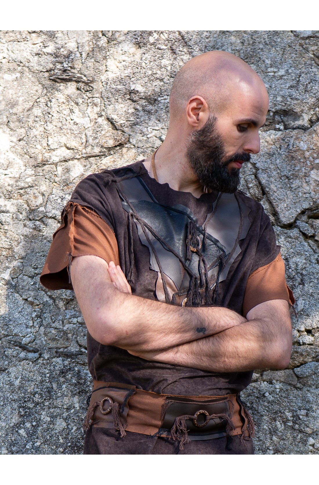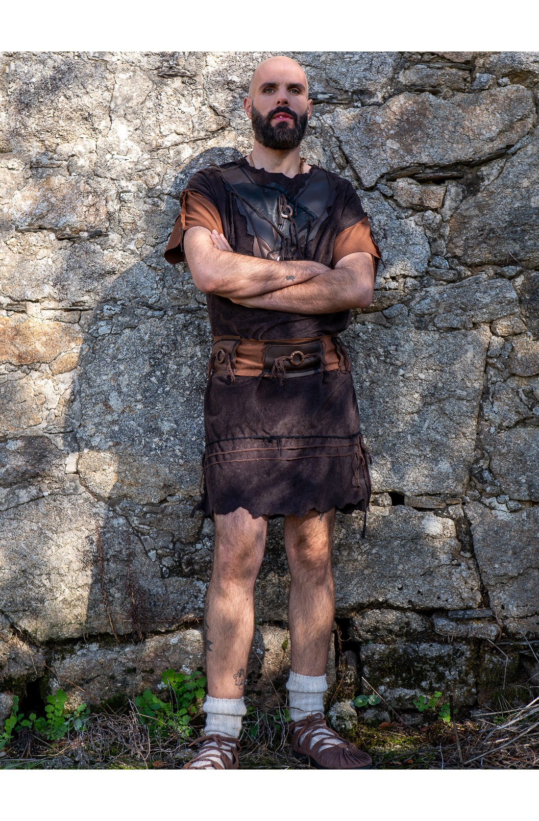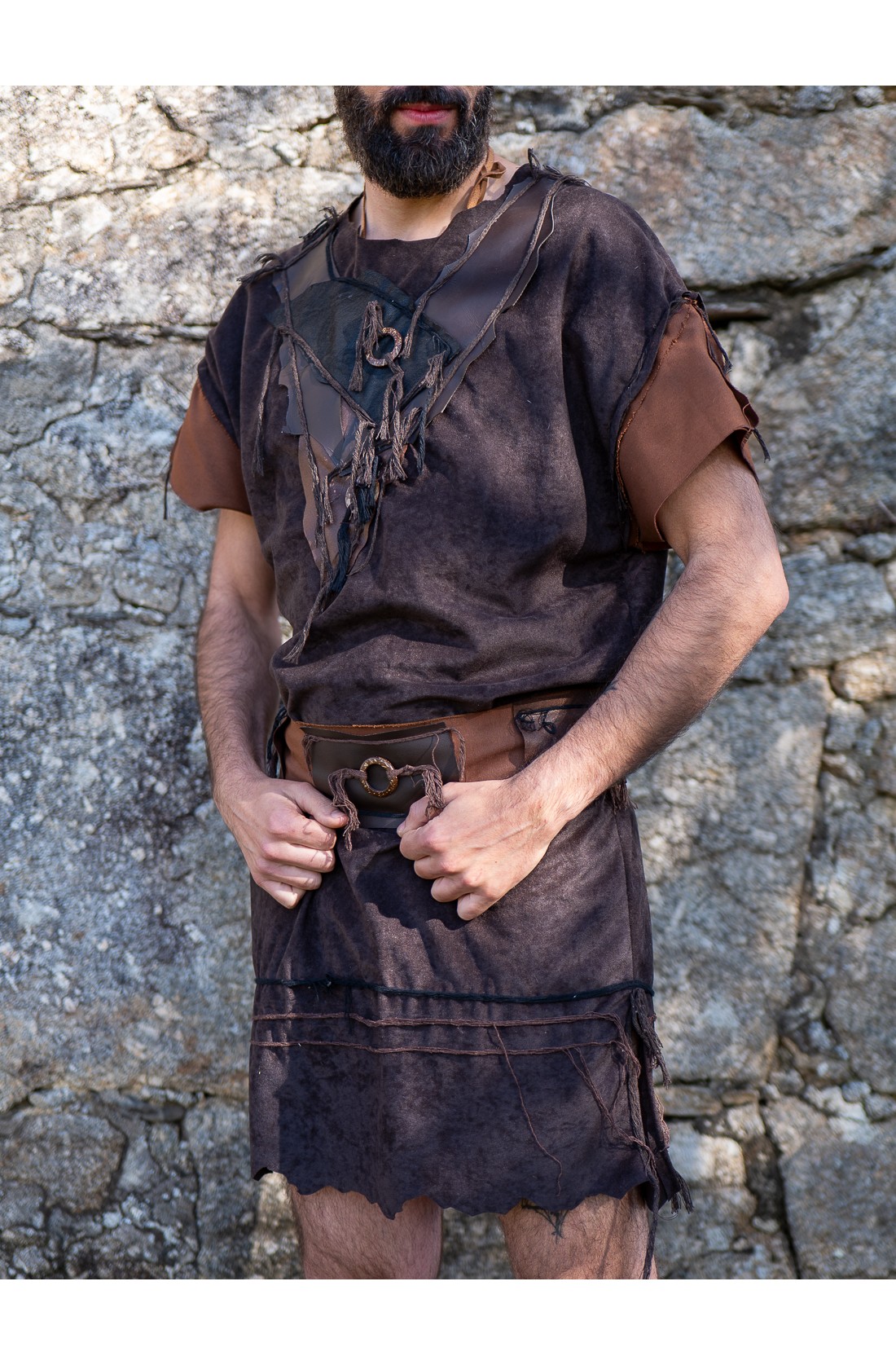 Discover Yutecrea's medieval short warrior mercenary outfit, a fresh and comfortable garment that combines vegan leather, wooden pieces, and cotton rope for a rustic and authentic style. Perfect for fairs and historical events, this outfit is full of unique details that make it special.