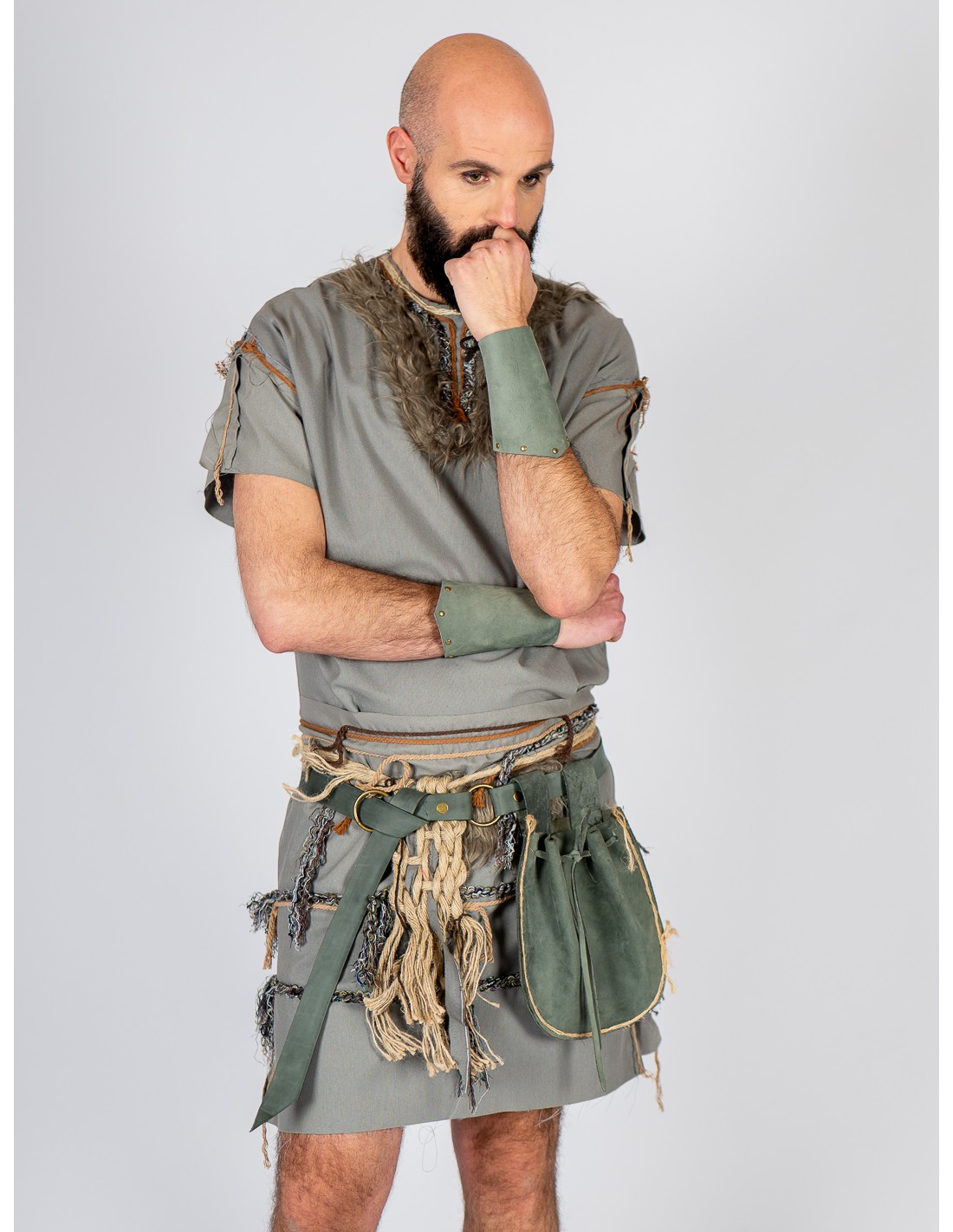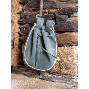 This genuine aged leather pouch, in a grayish-weathered tone, is a practical and rustic accessory, perfect for LARP and Celtic-Viking reenactments.