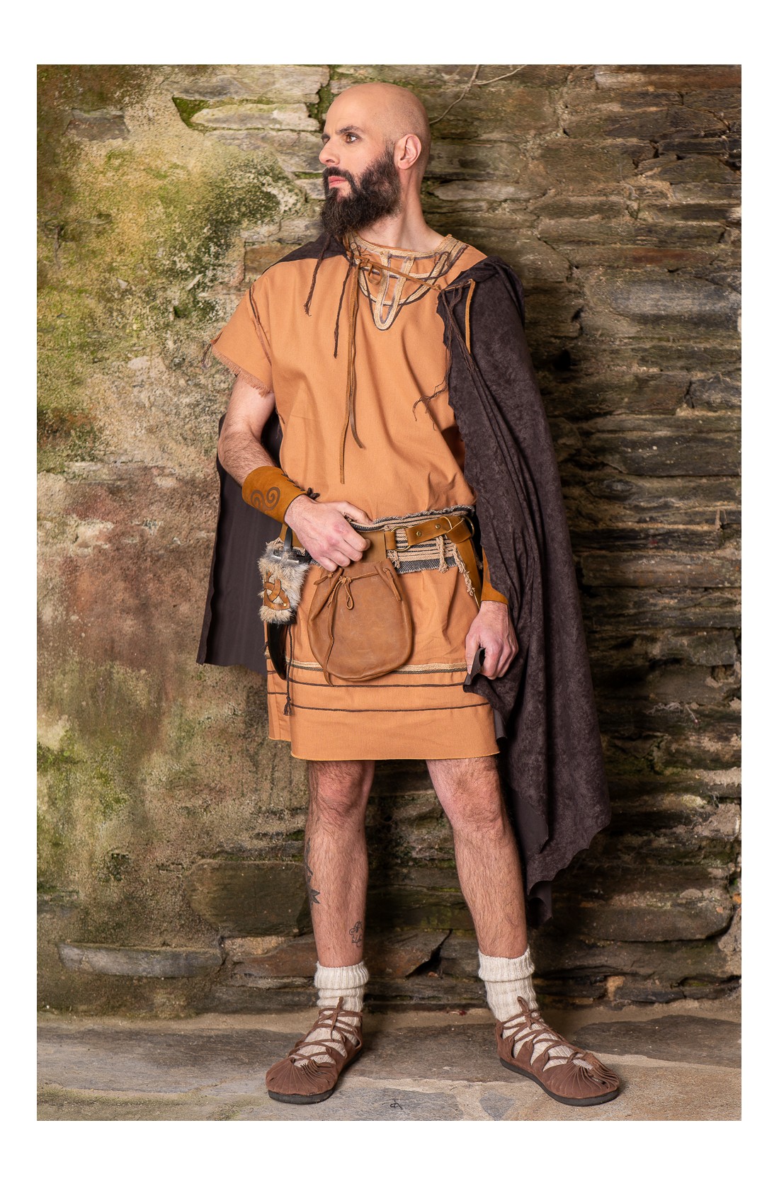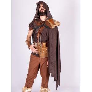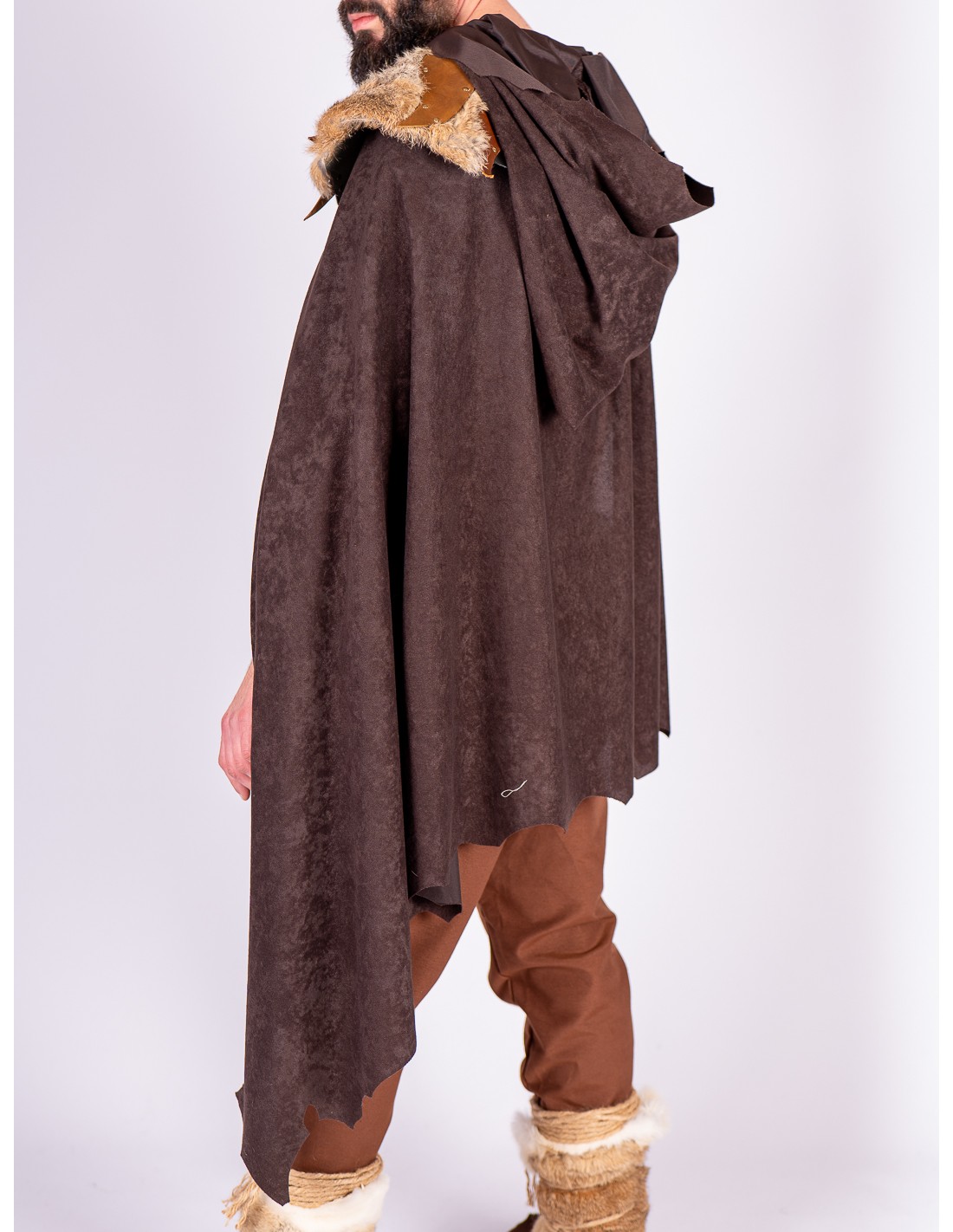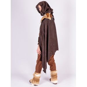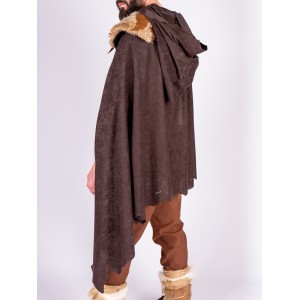 Capa con capucha marrón de inspiración vikinga y celta