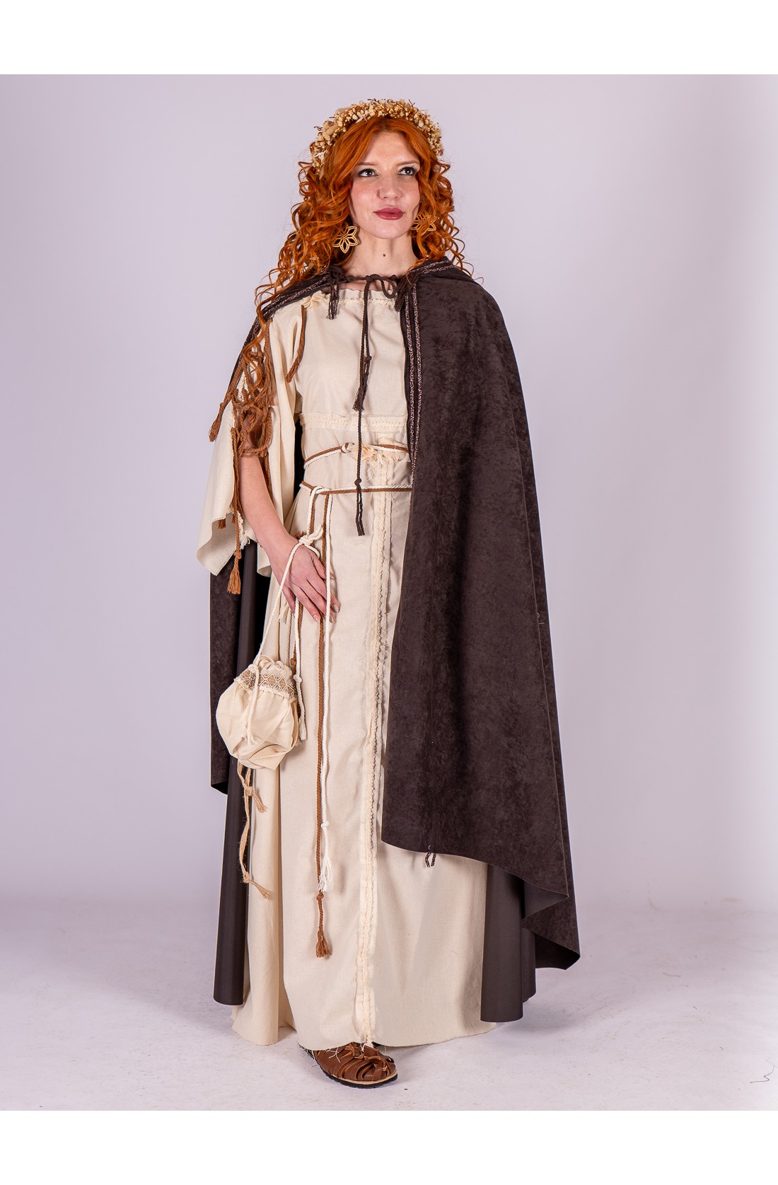 Capa de antelina con capucha para atuendo romano rústico