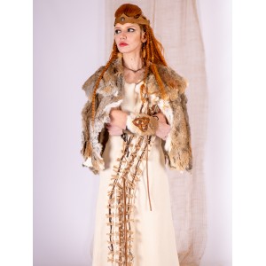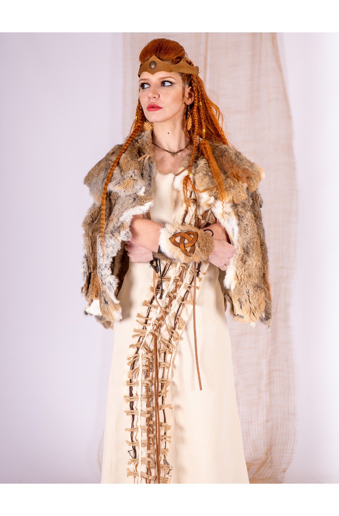 Su diseño en piel de conejo destaca por el símbolo de la triqueta en cuero curtido, fijado con remaches que resaltan sobre el pelaje. Este detalle celta no es solo decorativo, sino que otorga un aire de rango y mística a tu personaje de LARP o recreación histórica. Se ajustan mediante cordones, permitiendo que la pieza abrace tu brazo con firmeza. Creados en nuestros talleres de Yutecrea, estos brazales son un testimonio de artesanía viva que te transportará a un tiempo de leyendas y naturaleza salvaje.