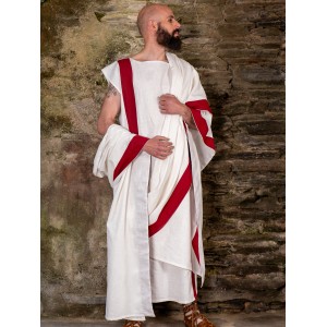 Traje de senador romano de lino con toga praetexta