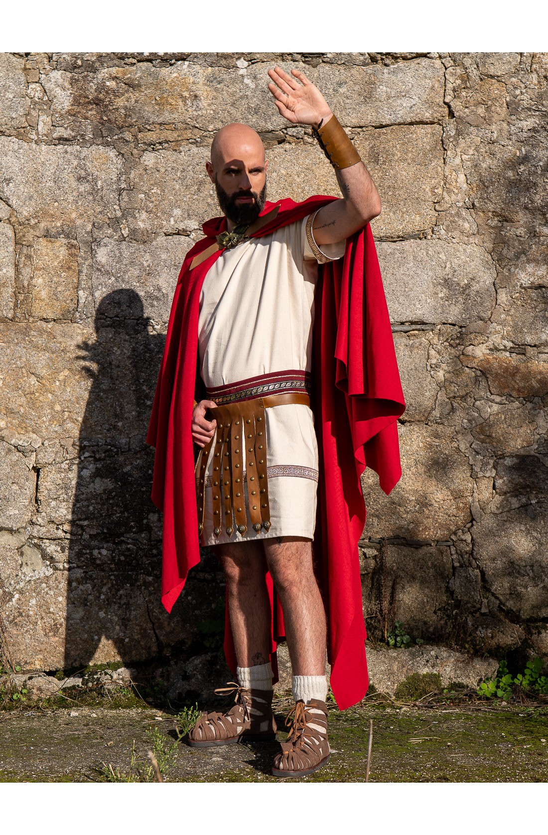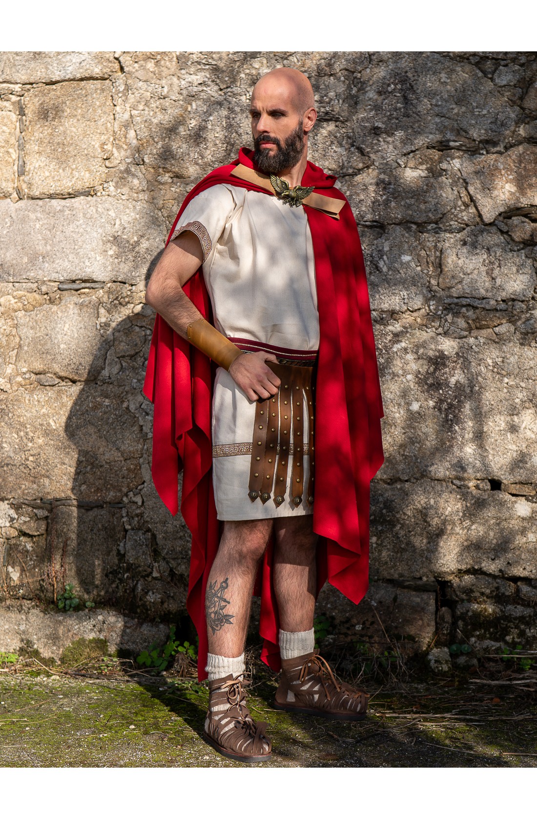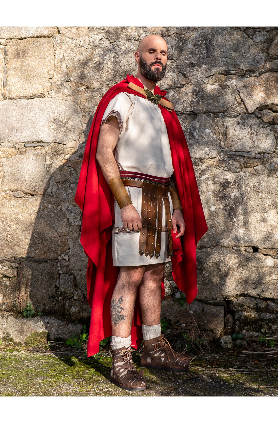 Esta capa completa la indumentaria de traje romano de hombre diseñado por nuestro equipo de Yute es una pieza de artesanía que no puede faltar en tu vestimenta romana, perfecto para tu evento de recreación histórica, de fantasía o LARP.