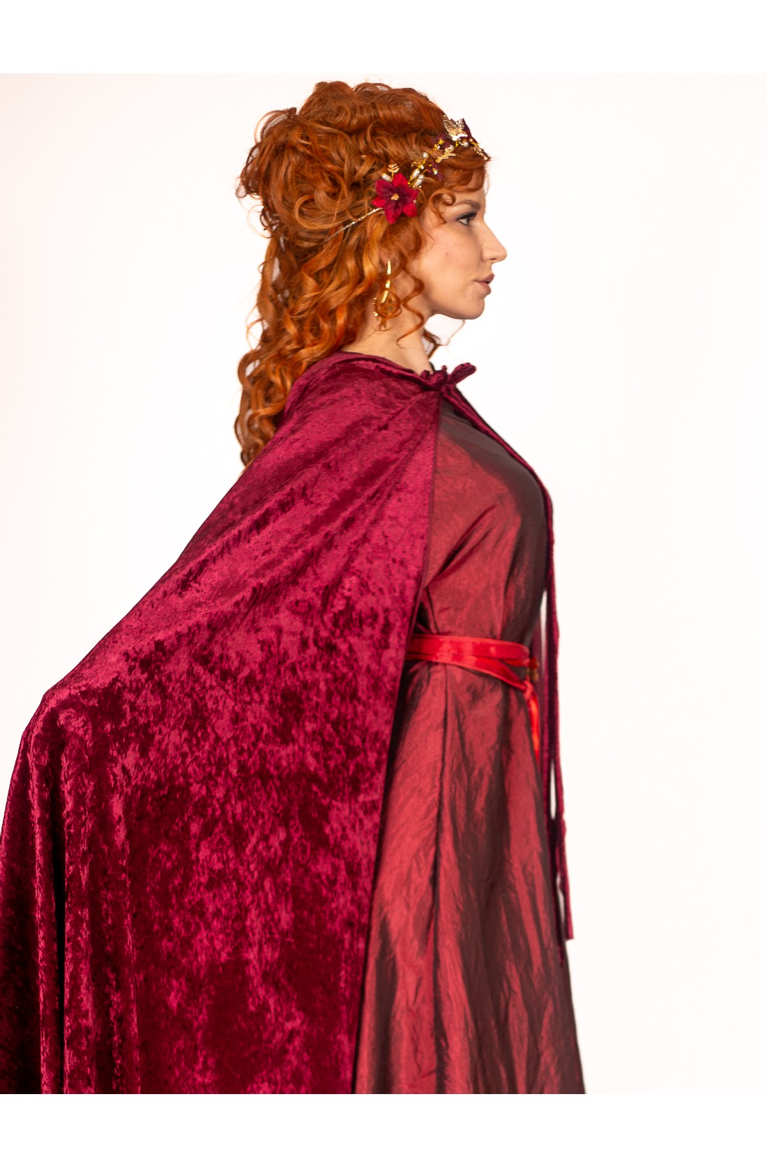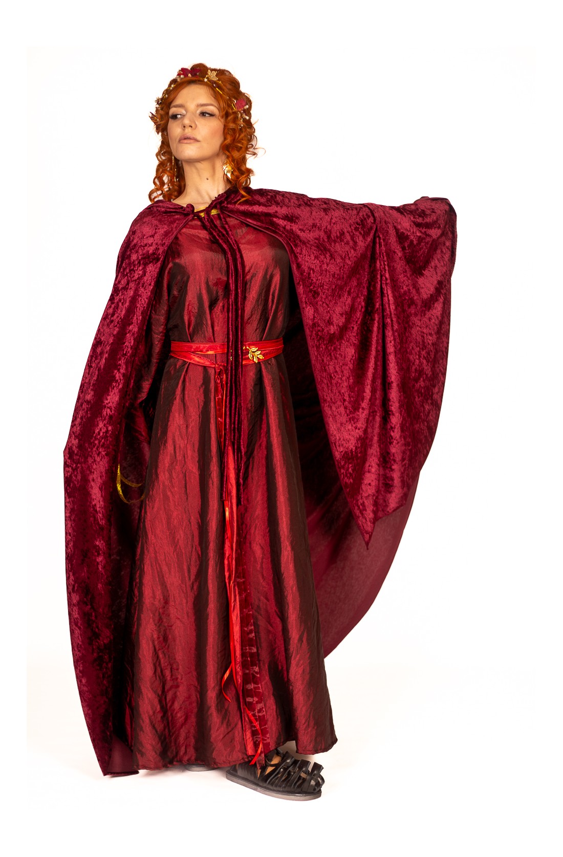 Capa Romana granate Aterciopelada para Mujer - Elegancia de la Antigua Roma de Yute Crea