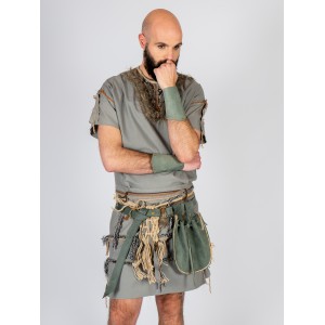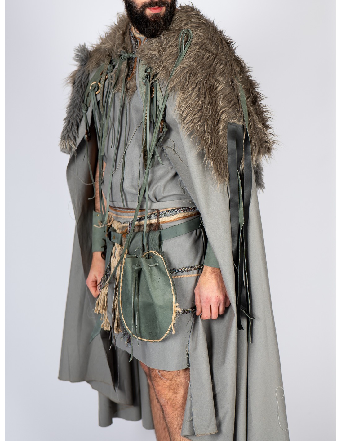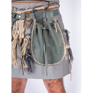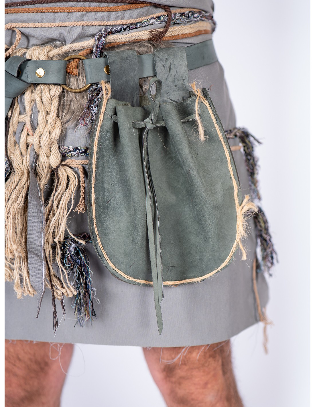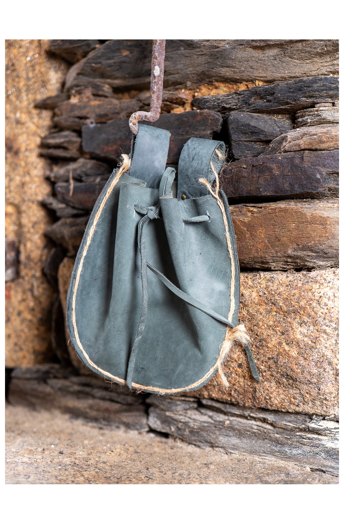 Este bolso de cuero auténtico, con su acabado envejecido en tono grisáceo, es un accesorio funcional y con un carácter rústico, ideal para LARP y recreaciones celtas y vikingas.